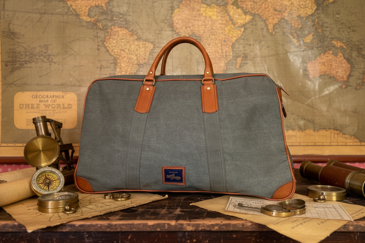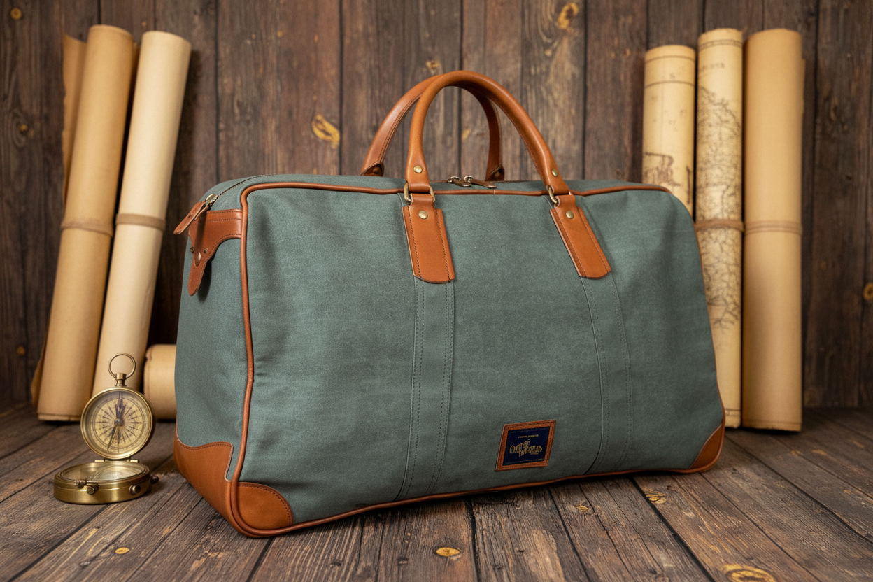 1940s LEATHER AND CANVAS KIT BAG LARGE (GREEN)