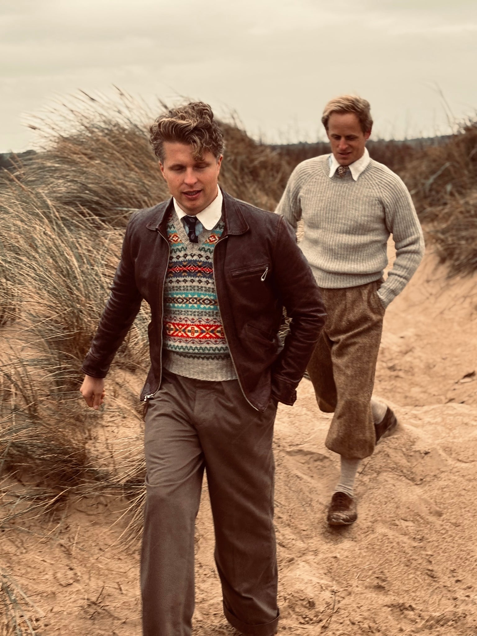 Celebrate timeless British style with this authentic Fair Isle slipover, inspired by golfing legend Henry Cotton, renowned for his effortless elegance both on and off the course. Each piece is expertly knitted in the Shetland Islands using locally sourced pure wool, reflecting generations of island craftsmanship. The design showcases traditional Fair Isle patterning in rich, pre-war tones of orange, red, brown, and gold — colours once favoured by style-conscious sportsmen of the 1920s and ’30s.