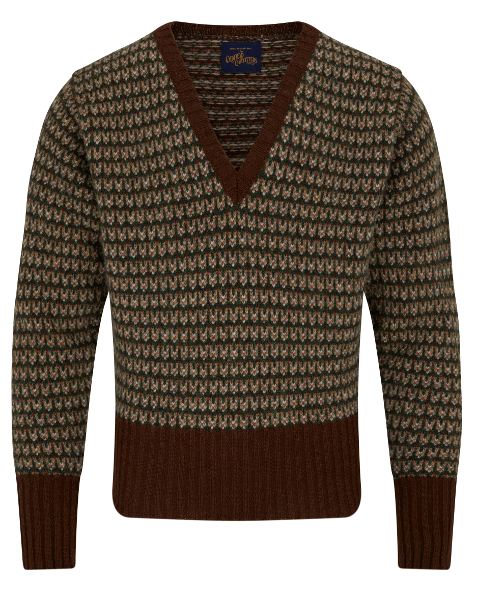 Made in the Shetland Isles using robust 3-ply Shetland wool, the sweater features a deep V-neck, a tailored fit, double cuffs, and a shorter length that pairs perfectly with our Errol trousers or Orson Plus 6s. Designed for both style and heritage, it’s a timeless piece.