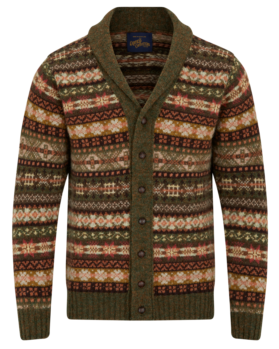 A truly authentic Fair Isle cardigan, featuring a classic shawl collar designed to keep the elements at bay. Popular throughout the 1920s and ’30s, it remains just as relevant and stylish today.
