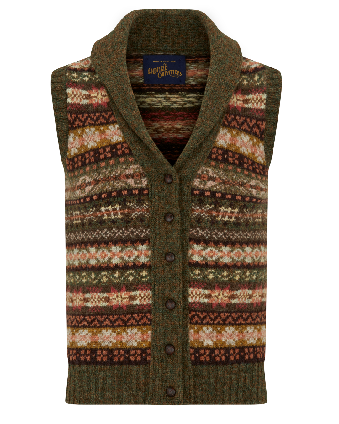 Expertly knitted in the Shetland Isles using 100% locally sourced pure wool, this waistcoat is a natural layer — offering warmth, comfort, and a strong sense of heritage. The all-over pattern evokes a time when dressing well was simply a way of life.