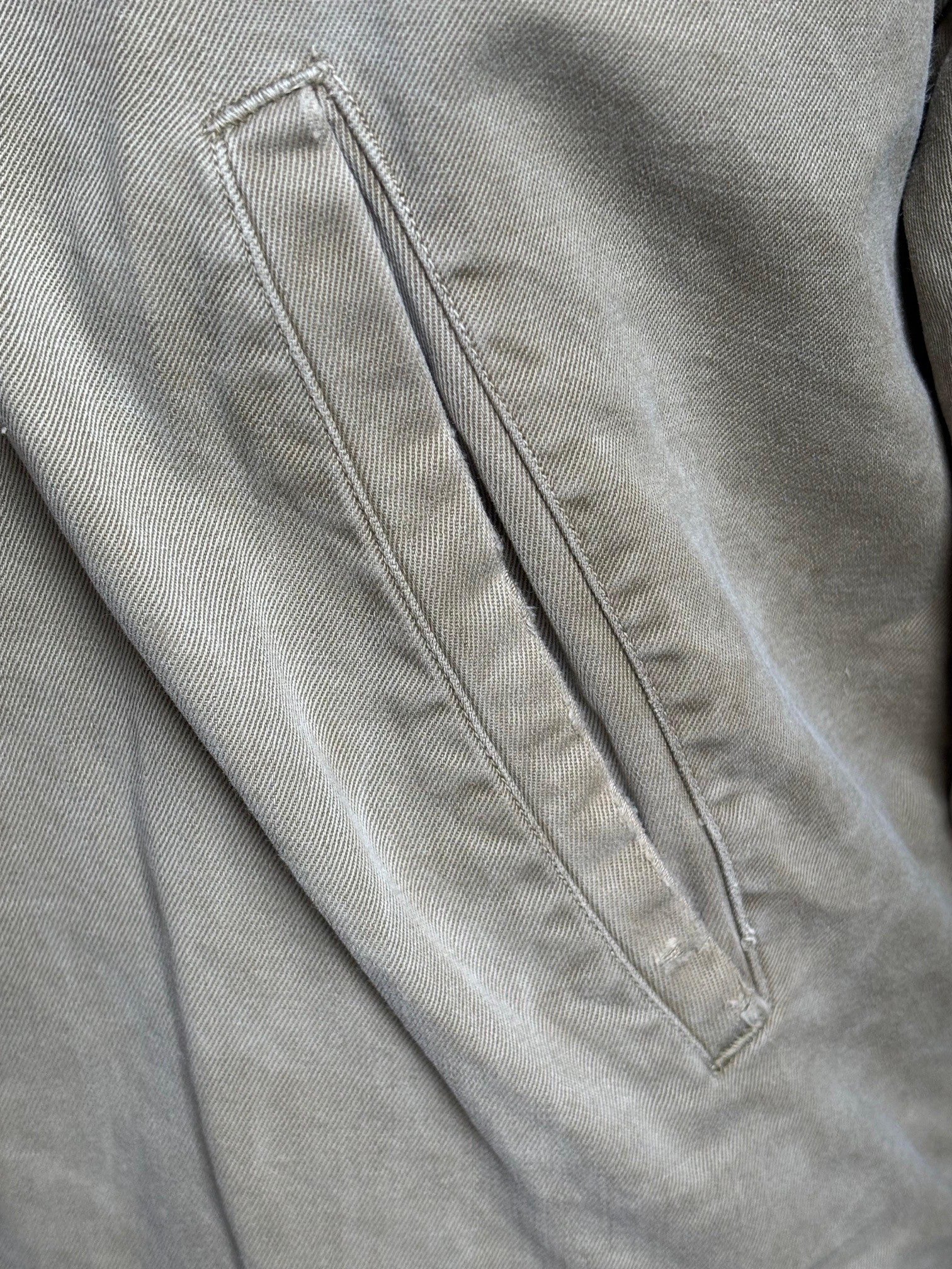 This particular jacket displays significant, honest wear throughout — including soft fading, fabric distressing, and fraying at the cuffs — all consistent with age and use. The patina adds character and reinforces its originality, making it especially appealing to collectors, historians, and enthusiasts of military garments with real presence.